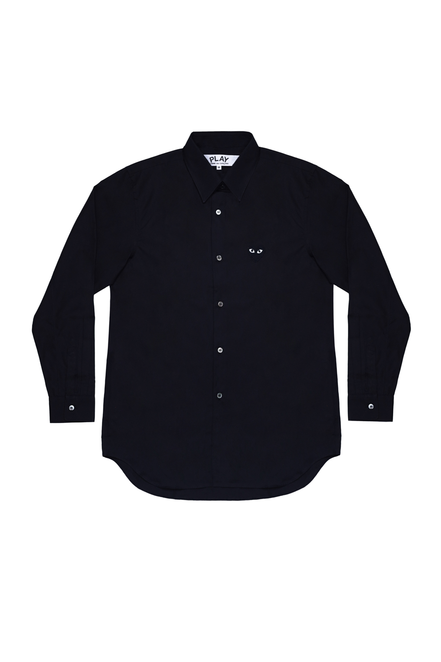 Black cotton shirt from Comme Des Garçons Play featuring a classic collar, long sleeves, a front button fastening and black embroidered logo at the chest.