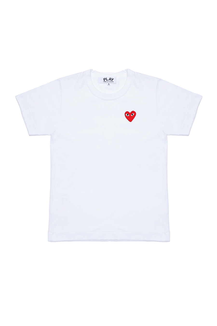 White classic T-shirt. Featuring signature red heart logo patch in front, short sleeves, round neck, straight hem.