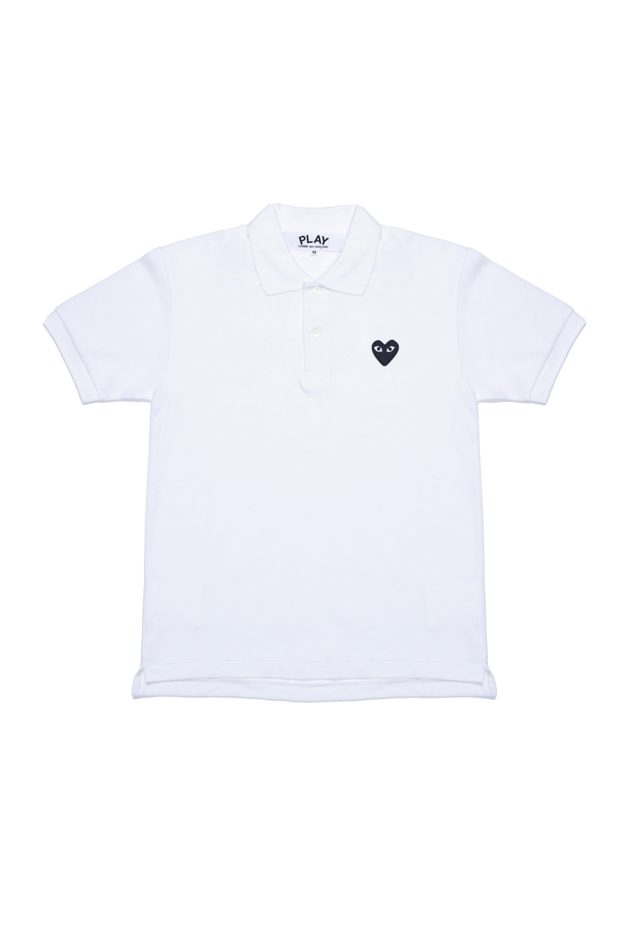 White classic polo shirt from Comme Des Garçons Play. Featuring signature heart logo patch in black at front, classic polo collar, and short sleeves.