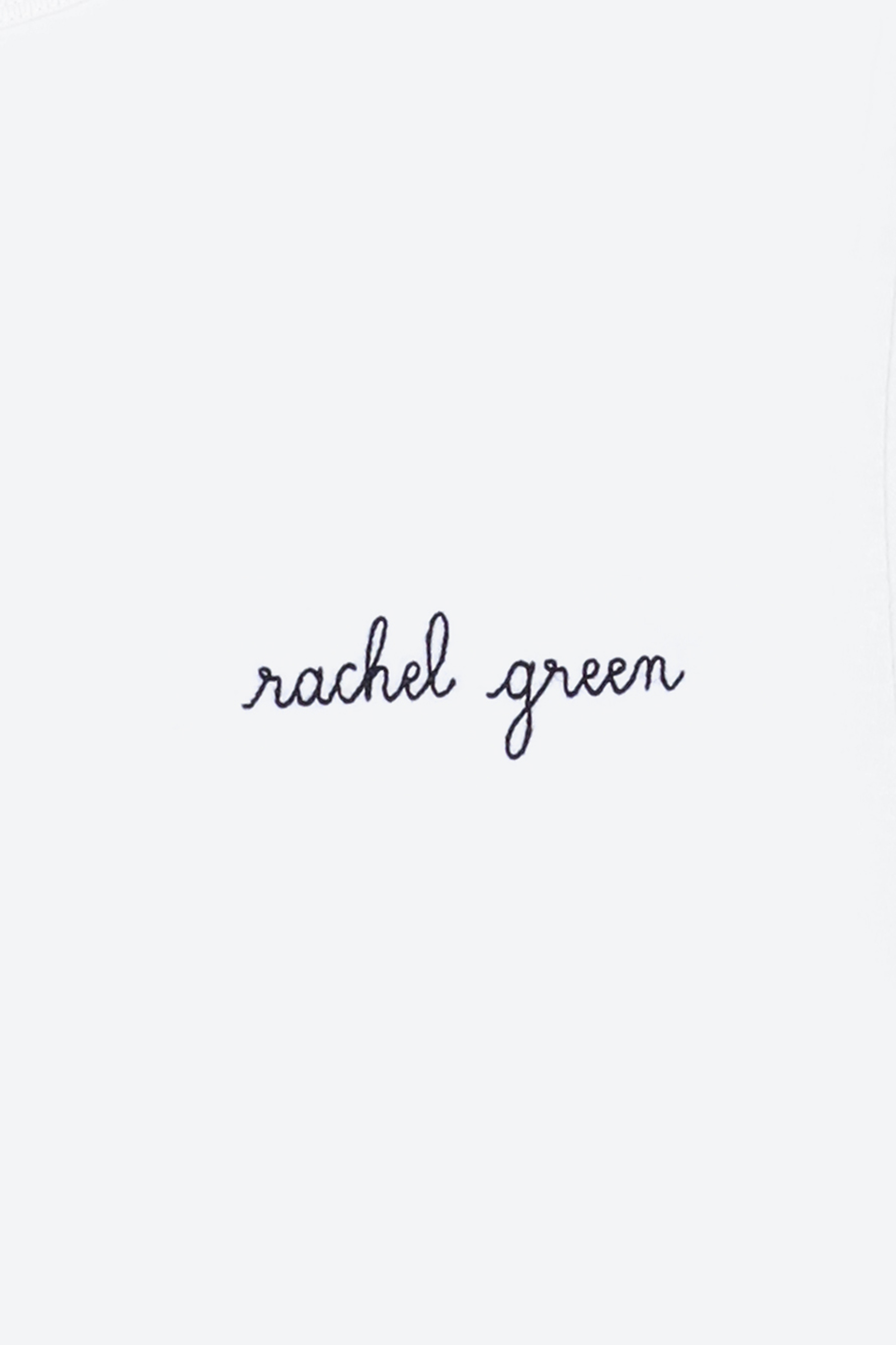 White organic cotton Rachel Green Friends x Maison Labiche T-Shirt. Featuring classic unisex fit, topstitched ribbed knit neckline, and short sleeves. Its embroidery reinterprets the sitcom's favorite characters.