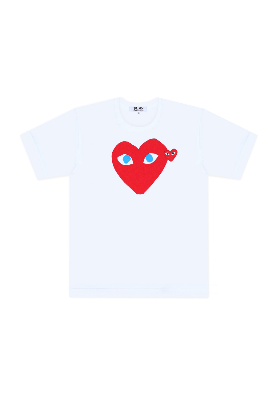 White cotton T-Shirt from Comme Des Garçons Play. Featuring blue eye logo print and signature red heart embroidery in front, a round neck, short sleeves and a straight hem.