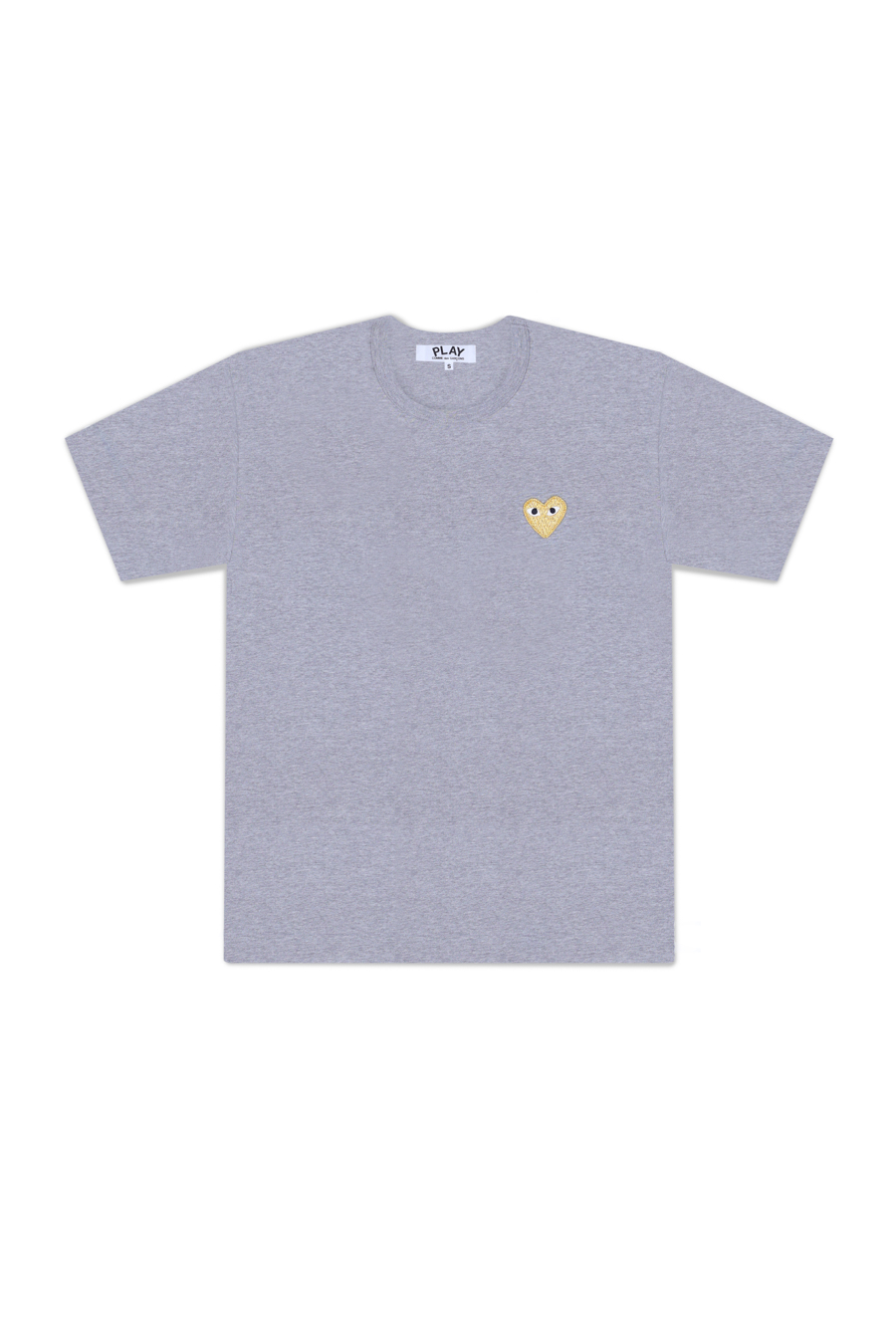 Grey cotton T-Shirt from Comme Des Garçons Play. Featuring signature gold embroidered logo in front, crew neck, short sleeves, and a straight hem.