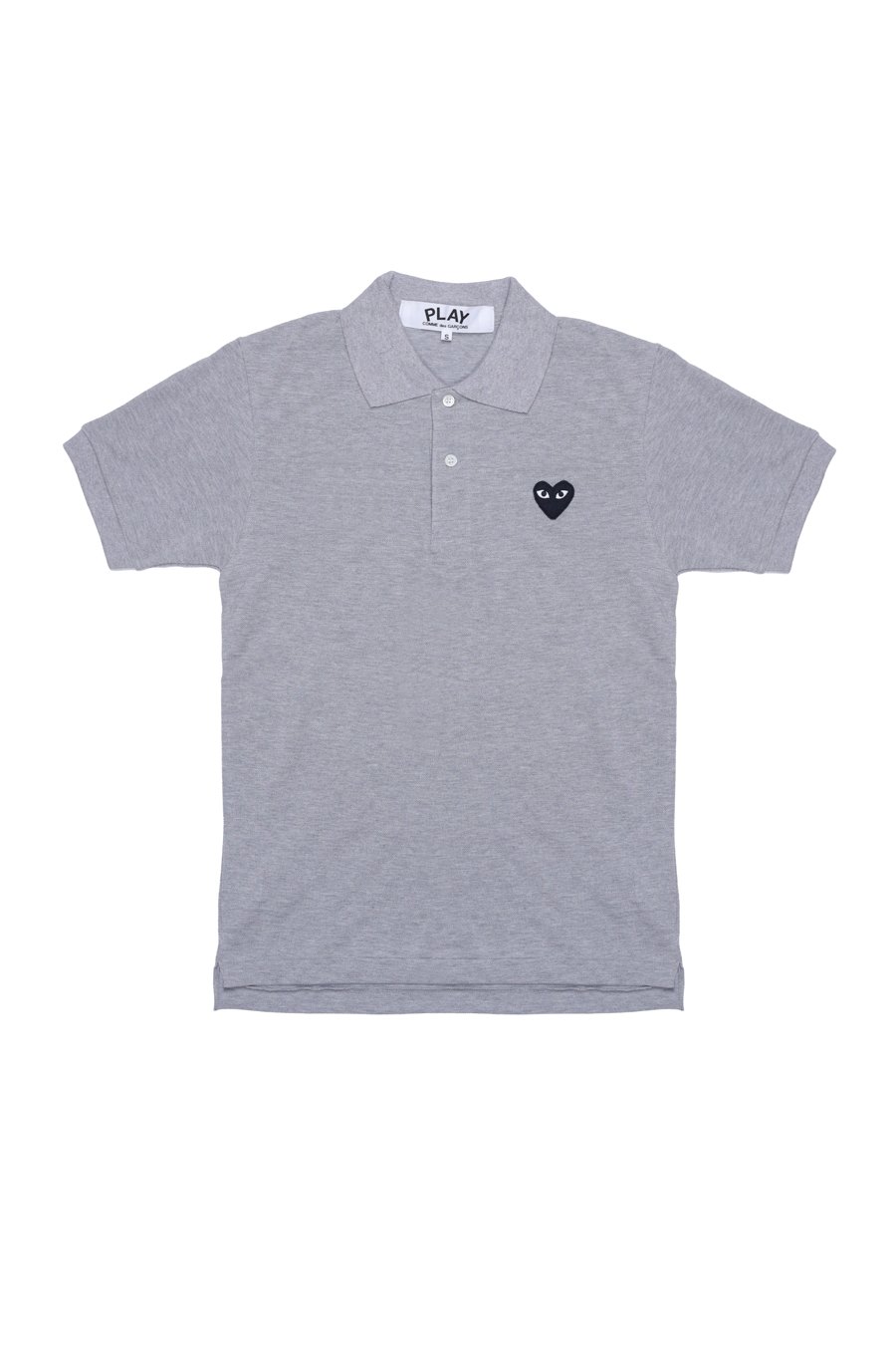 Grey classic polo shirt from Comme Des Garçons Play. Featuring a signature black embroidered logo at front, classic collar, and short sleeves.